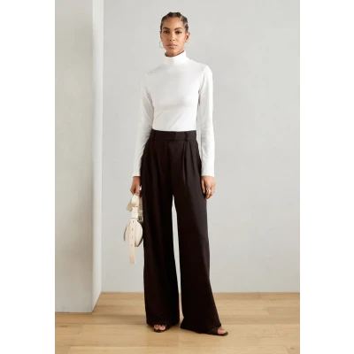SMART WIDE-LEG WITH BUCKLE DETAIL - Trousers - mottled light brown