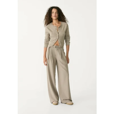 WIDE-LEG WITH BUTTONS - Trousers - mottled light brown